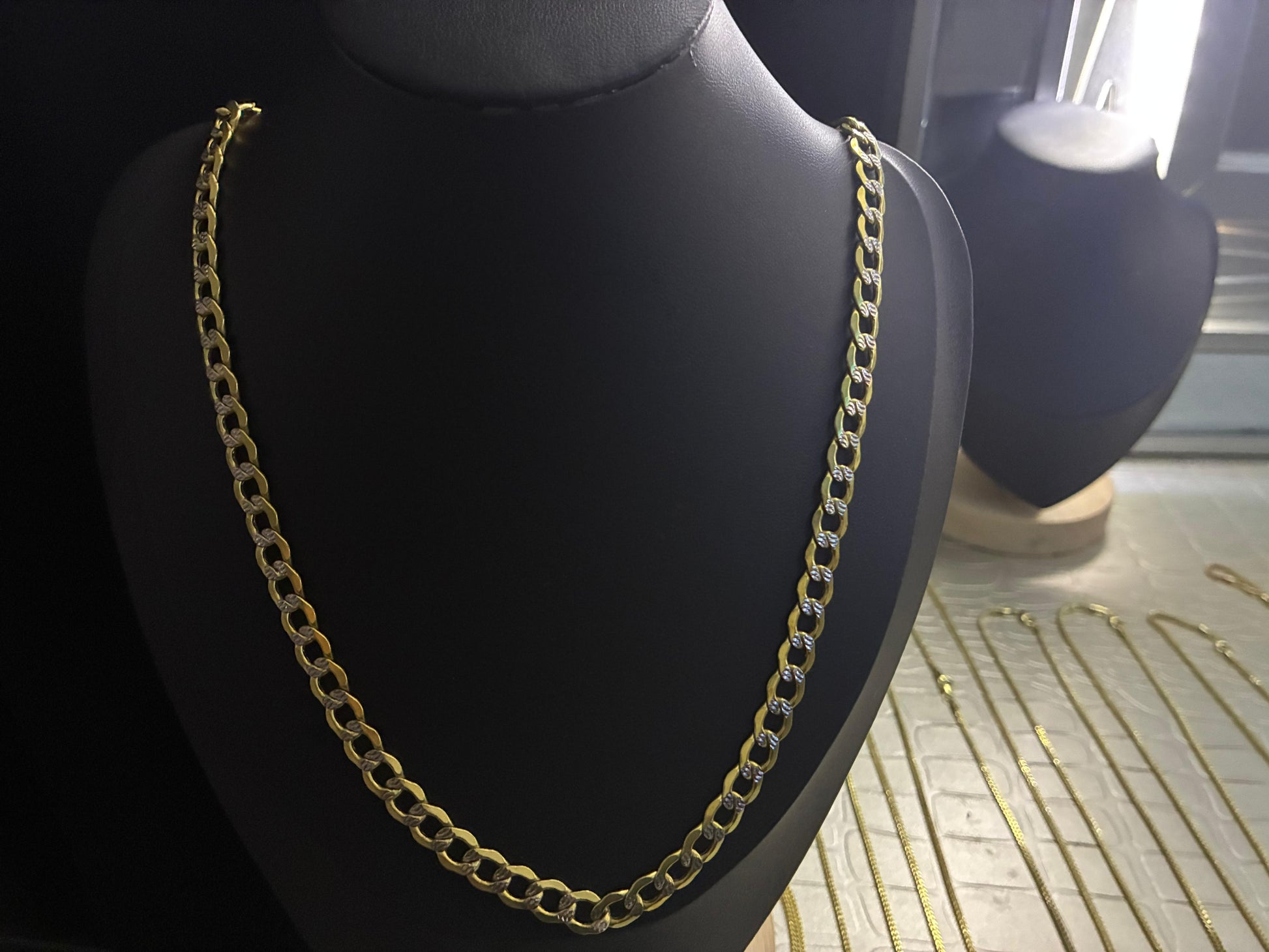 Destaca con esta cadena Cubana Semi Sólida de oro 10K, diseñada para ofrecer resistencia y elegancia en una pieza única. Su acabado sólido garantiza durabilidad diaria, mientras que su estilo clásico realza cualquier atuendo con sofisticación. Ideal para quienes buscan una joya que combine fuerza y belleza atemporal.